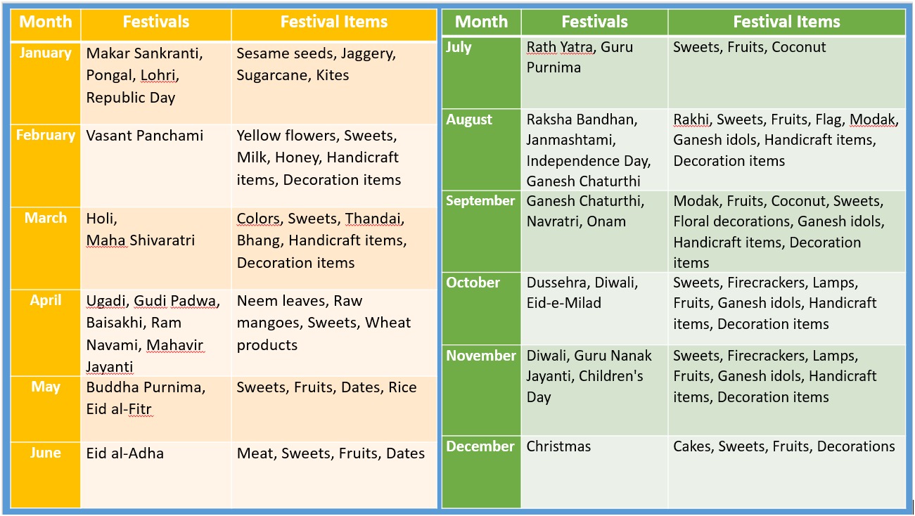 Indian Festive Calendar